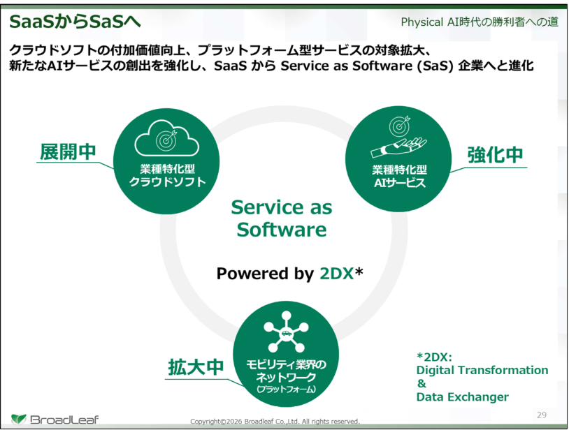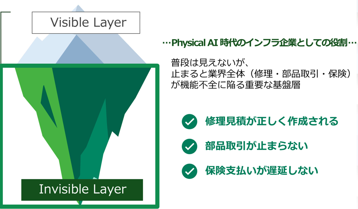 同社が独自に自動車部品に発番するBLコードは業界のデファクトスタンダードとなっており、事業者が部品を特定する上で欠かせないものとなっている。「SaS:Service as Software」を掲げ、同社にしかできないデータの集約・連携・循環を通じて産業全体の高度化に貢献するインフラ企業として、持続的な成長とPhysical AI時代の勝利者を目指している。