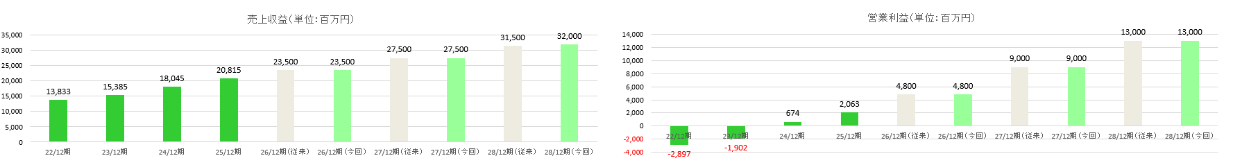 売上収益 | 13,833 | 15,385 | 18,045 | 20,815 | 23,500 | 23,500 | 27,500 | 27,500 | 31.500 | 32,000 |