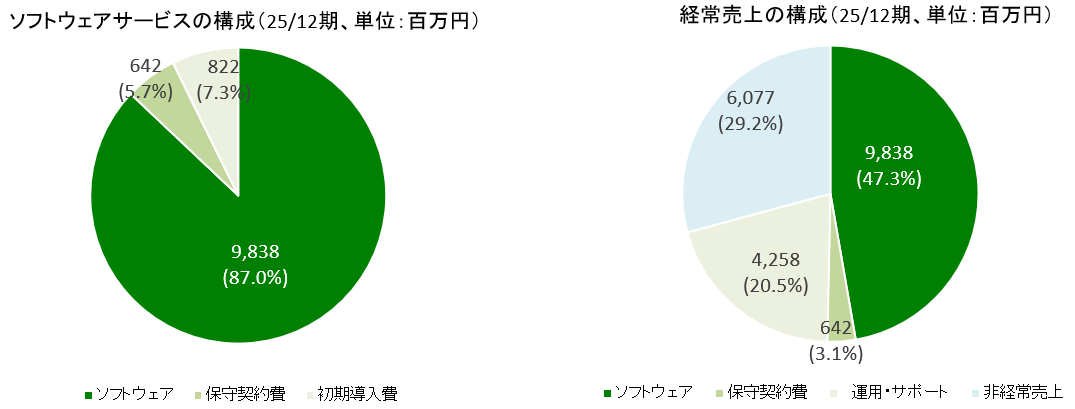 同社では、「ソフトウェア」「保守契約費」「運用・サポート」の売上合計を、安定的に計上される「経常売上」と定義している。2025年12月期の経常売上は前期比18.6%増の147億37百万円で、全売上高の70.8%を占めている。