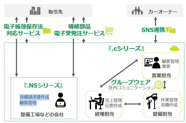 そこで、クラウドソフト「.cシリーズ」に、自動車補修部品の受発注プラットフォームを標準搭載(100%採用)するだけでなく、連動性や操作性などを高める予定であり、利用頻度も増加を見込んでいる。