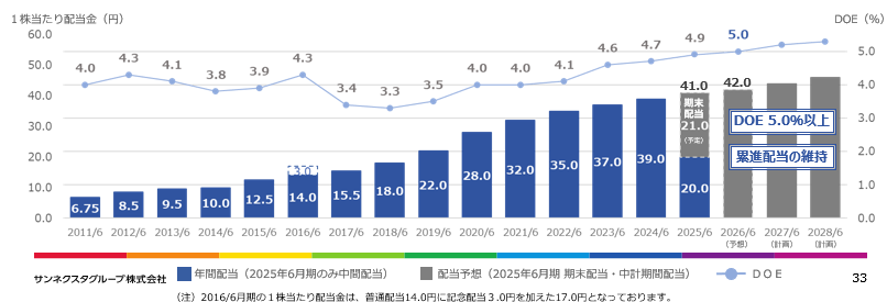 - 業績予想に変更は無い。26年6月期の売上高は前期比2.3%増の89億円の予想。社宅マネジメント事業、マンションマネジメント事業は着実な成長を見込む。営業利益は同5.8%減の7億円の見込み。今後の事業拡大に向けた体制整備やオペレーション品質の維持と安定化に対するコストが増加することから減益を予想している。配当は前期比1.00円/株増の42.00円/株と、記念配当を除く15期連続増配を予定している。予想配当性向は83.9%。