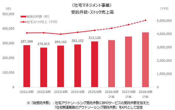 社宅関連業務のアウトシーシング受託件数(社宅アウトソーシングの受託件数とBPOサービスの受託件数の合計、2025年6月期)は約31万件、同社のアウトソーシングサービスの契約顧客企業数は大手企業を中心に300社以上(2025年6月期)。顧客企業への物件紹介のため日本社宅ネットと呼ぶ法人対応専門の賃貸不動産会社ネットワークを全国ベースで構築している。加盟店・認定店は300店以上(2025年6月末)で、高品質なサービスを提供するため、同社独自の審査基準により厳選したパートナー企業とフランチャイズ契約を締結している。
