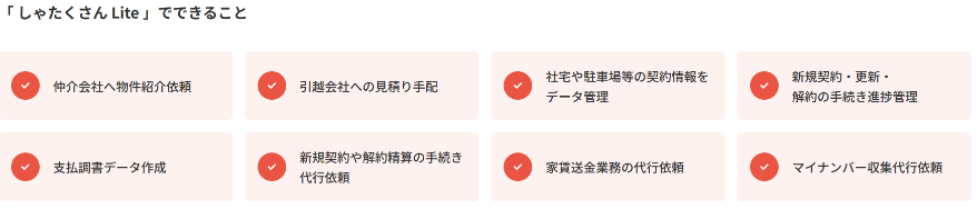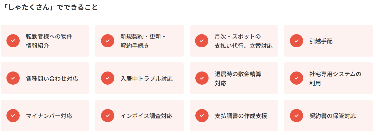 ①社宅管理事務代行サービス(社宅アウトソーシングサービス)「しゃたくさん」