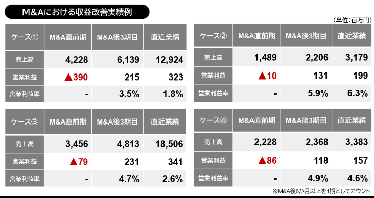 そうした中、投資家が注目すべきは同社の「事業再生能力」であろう。2007年10月のウイルプラスホールディングス設立以降、現在まで10件(※)のM&Aを実施してきたが、全ての案件で黒字化を達成している。※直近3期未満に実施したものを除く