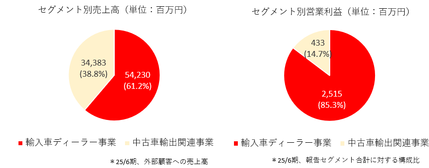報告セグメントは「輸入車ディーラー事業」「中古車輸出関連事業」の2つ。