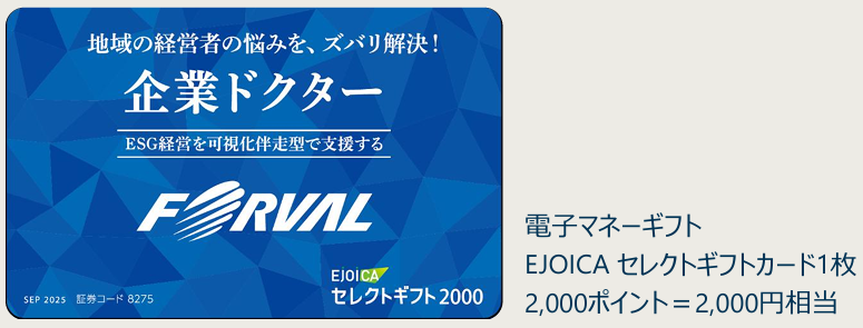 1単元(100株)以上保有 | 毎年9月30日 | ◆株主1人につき「EJOICA(イージョイカ)セレクトギフト(カードタイプ) 」 を1枚贈呈 ◆2,000ポイント=2,000円相当 |