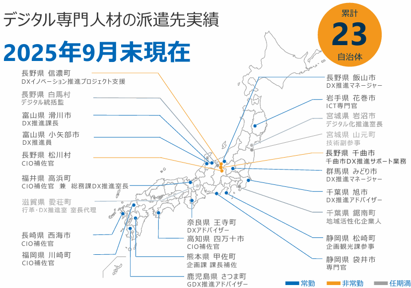 同社グループは、注力事業である「F-Japan戦略」の推進により日本全国でDX・GX人材を育成している。その結果、DX・GX人材が地元経済を活性化させるという好循環を実現し、永続的な地方創生につなげることを目指す。その実現に向けて各地方自治体にデジタル人材を派遣し、現状及びその課題を可視化したうえ、「DX・GX人材の育成」「DX・GX人材の就職・起業」「DX・GX人材による地域経済の活性化」の仕組みづくりを伴走支援している。更に、伴走支援するための人材の育成など事業基盤の強化を積極的に推進している。