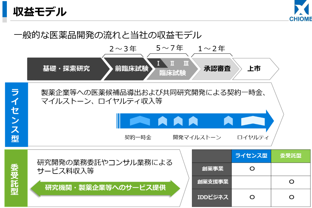 これは、同社が導出したいタイミングで必ずしも適切な導出先が見つかるかは明確ではないこと、ある程度開発を進めて付加価値を付けた後に導出したほうが事業として明らかに良好な場合もあることを想定しているためである。