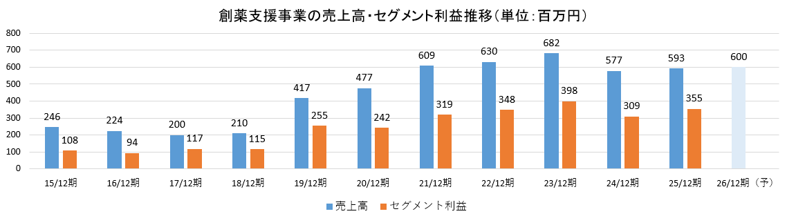 *単位:百万円、円。創薬事業における合理的な業績予想の算定が困難なため、26年12月期の業績予想について会社側は創薬支援事業の売上高600百万円のみ開示している。