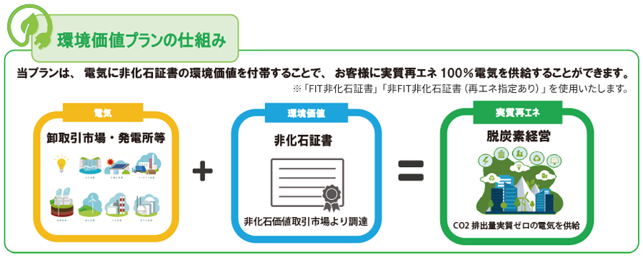 ※非化石証書とは、太陽光発電や風力発電などの再生可能エネルギーや原子力発電といった非化石電源で発電された電力が持つ「二酸化炭素(CO2)を排出しない」という環境価値の部分を分離して取引ができるように、国が証書化した環境価値。