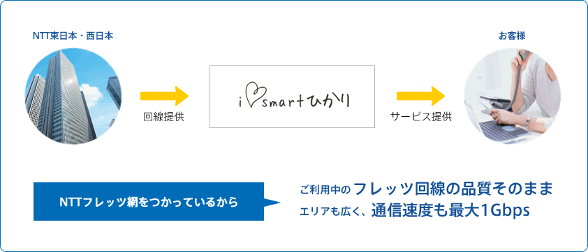 NTT東日本・西日本が提供する光コラボレーションモデルを受け、同社がオリジナル料金で提供している光回線サービス。①バックボーンはNTTのフレッツ網を利用しているため品質が安定している。②請求の一本化ができるというメリットを持つ。おまかせ請求やワンビリングサービスで培われた請求一本化のノウハウが武器となっている。