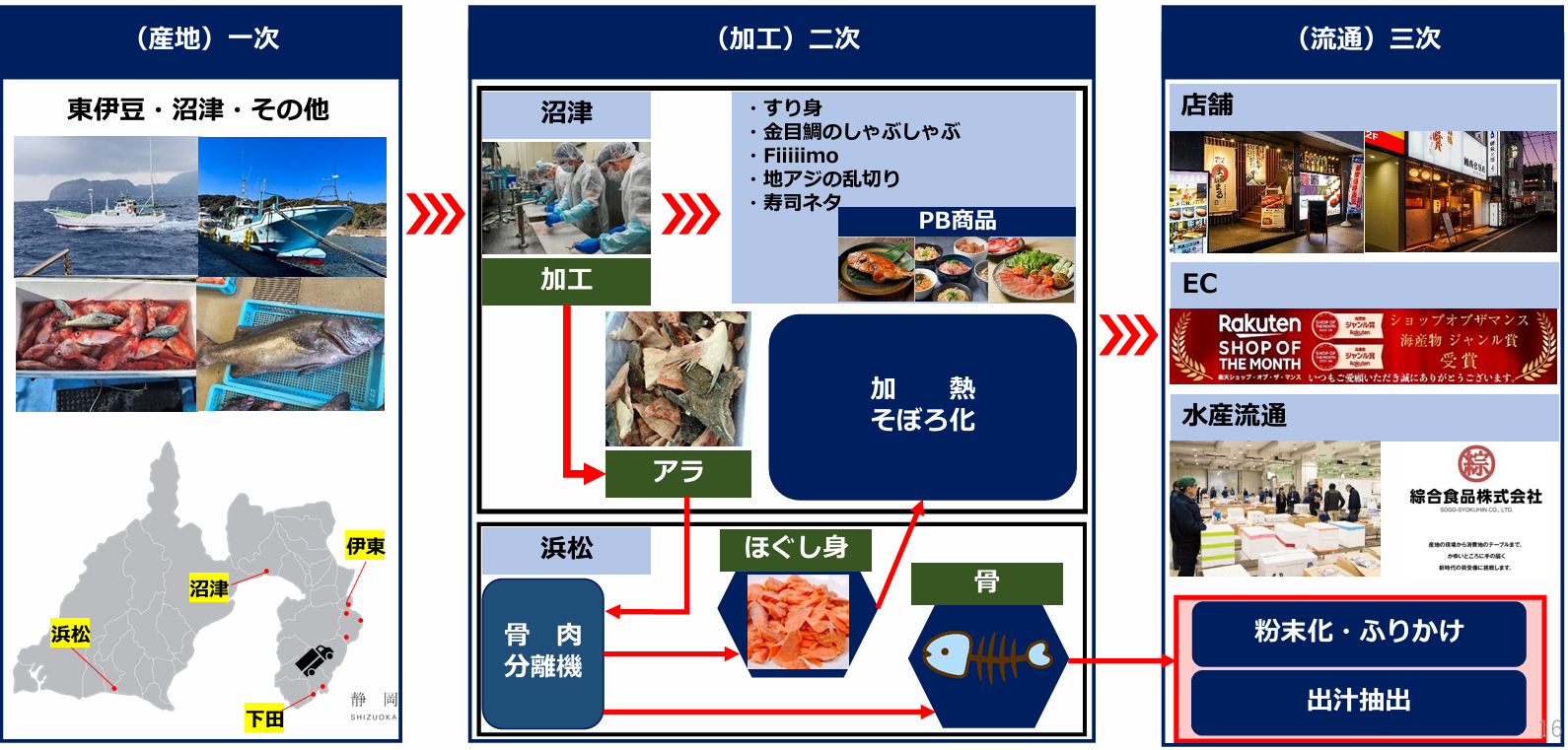 受注案件が増加中。26/6期の重要ポイントともいえる。自社専用船や提携船団で捕れた魚を沼津で加工、総合食品や同社の飲食店で販売することで高付加価値化。ホテルや高級飲食店、スーパー/百貨店にも販売する。
