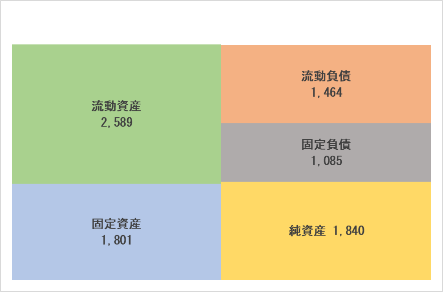 流動資産 | 2,367 | 2,589 | 流動負債 | 1,214 | 1,464 |