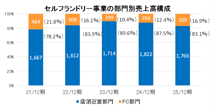 セルフランドリー事業 | FC部門 | 259 | 12.4% | 359 | 14.2% | +38.6% |