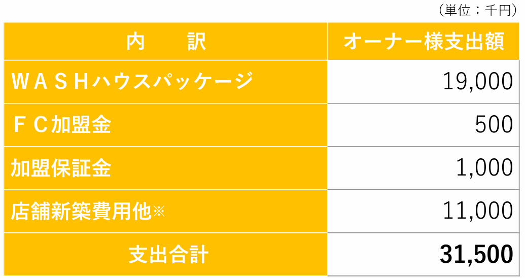 ![]() ※標準例、実際には物件によって異なる。 | オーナーの出店時支出例