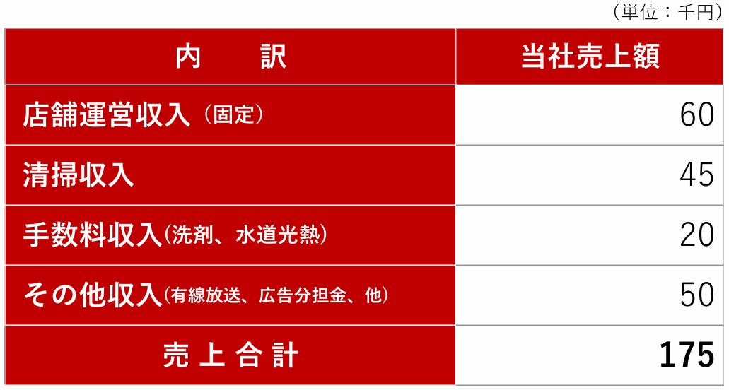 ![]() ※1ヶ月あたりの収益構造モデル。 |