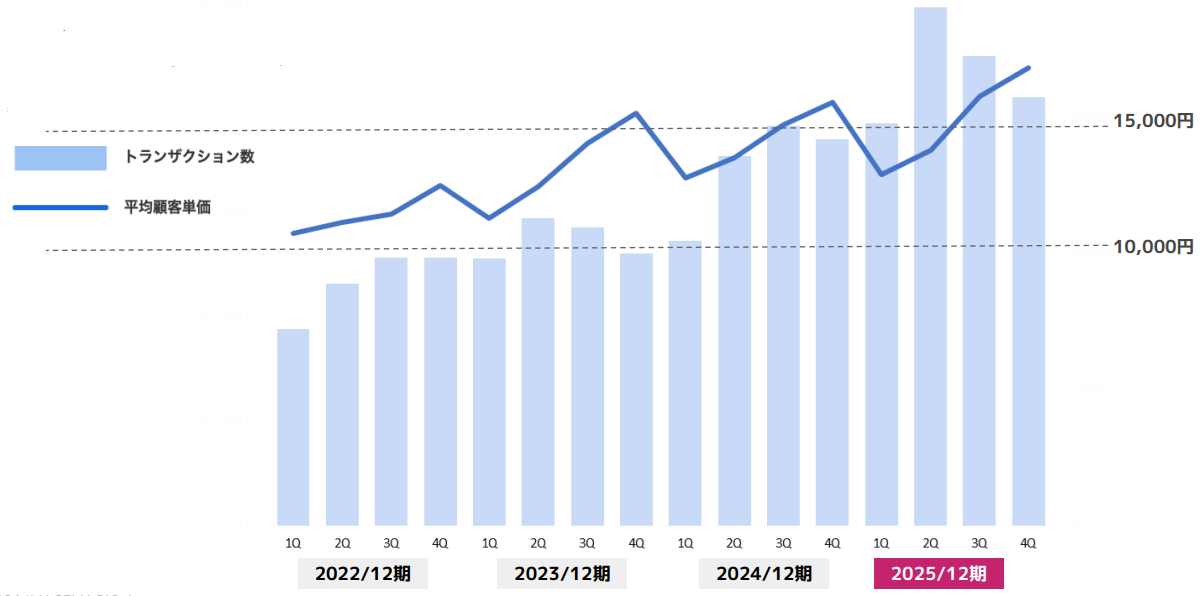 26/12期は連続の2桁増収増益を見込んでいますが、期初のイメージとしては25/12期と似たところはあり、やはり慎重な予想ではあります。中間期の予想は開示しておりませんが、例年通り下期偏重の見通しではあります。リスクはあまりないのですが、AIの台頭は影響があるかもしれません。AIを利用して欲しいものが見つかるようになるとプリントオンデマンド(以下、POD)の購買ルートが変わる可能性はあります。ただし、我々もそこには対応を進めており、オポチュニティであるとも思っています。なお、1Qは例年通り静かなスタートですが、概ね計画通りの進捗となっております。