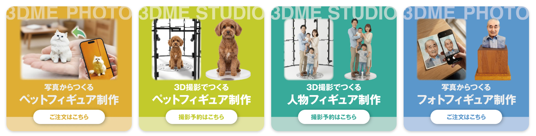 「3DME」は、3D撮影・写真から人物やペットのフィギュアを制作するもの。TV取材も多数。