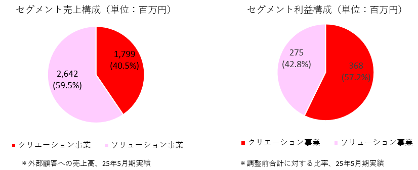 報告セグメントは、クリエーション事業とソリューション事業の2つ。