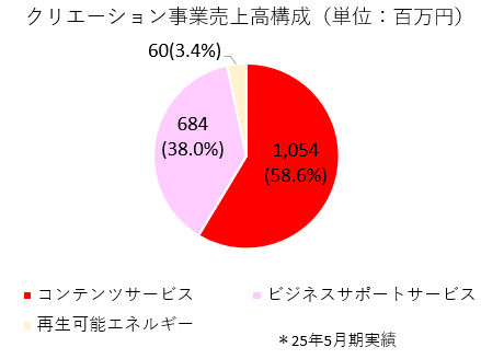 「コンテンツサービス」「ビジネスサポートサービス」「再生可能エネルギー」で構成されている。