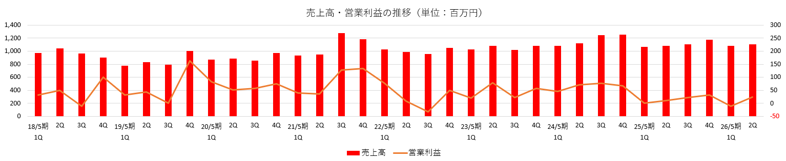 2026年5月(予) | 4,580 | 85 | 110 | 45 | 1.17 | 3.00 |