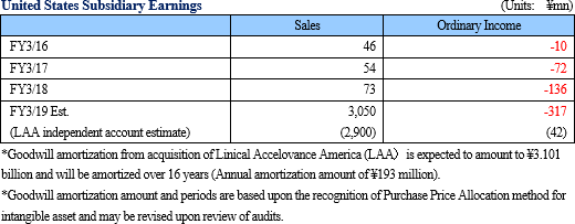 Linical's estimates for fiscal year March 2019 call for sales and ordinary income to rise by 43.7% and 9.1% year-on-year to ¥13.1 and ¥1.993 billion respectively.Large pharmaceutical companies are dealing with the negative influence of drug pricing revisions implemented in 2018 and the issue of pharmaceutical products going off patent by, and acquisition of overseas venture companies to secure promising new pharmaceutical products under development and strong demand for outsourcing of pharmaceutical product development, to create revolutionary new drugs and to improve efficiency and productivity, are expected to contribute to increases in clinical trials for pharmaceutical product development. In particular, a strong need for effective treatments in the realms of oncology and central nervous system ailments is expected to contribute to full scale pharmaceutical product development in these realms. In addition, difficulties in new drug administration methods in oncology applications is contributing to an expansion in corporate led clinical research and will also lead to increased outsourcing needs to establish clinical research methodology in the realm of contract medical affairs. Against this backdrop, Linical will endeavor to acquire repeat orders from existing clients who have a high regard for Linical's businesses and to strengthen marketing activities to secure orders from new clients within the CRO business. In particular, Linical plans to expand sales by capturing demand for global joint clinical trials from both new and existing customers in the oncology and central nervous system ailment realms, which are strengths of the Linical Group. With regard to profit, the Company will conduct measures to realize a highly profitable earning structure by expanding the North American business and fortifying the management foundations of overseas subsidiaries despite amortization of goodwill resulting from M&A activities in Korea and Europe, and from the acquisition of Accelovance, Inc. to become a subsidiary Linical Accelovance America, Inc. in the United States in April 2018. Moreover, Linical will aggressively promote marketing activities for corporate led clinical research of post market launch new drugs and to expand its client base in the contract medical affairs business to receive new projects by leveraging the specialized knowledge cultivated in the CRO business. Operating income is expected to grow by 10.0% year-on-year to ¥2.031 billion despite the outlook for increases in staffing and goodwill amortization expenses arising from acquisitions. Consequently, operating income margin is projected to fall by 4.8 points year-on-year to 15.5%. The Company does not anticipate any significant amounts of income or losses to be booked at the non-operating and extraordinary income levels. Linical projects dividends to rise by ¥1 from the previous term to ¥12 per share in the coming term. ![]() ![]() ![]() ![]() (3) Recent Topics