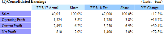 * Estimates are those of the Company. From FY5/16, the definition for net profit has been changed to net profit attributable to parent company stockholders (Abbreviated as parent net profit).