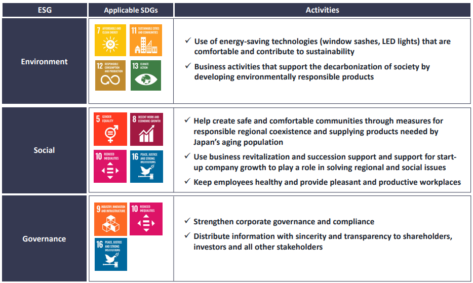3 | To strive for management that contributes to the creation of local living environments by providing “homes that enrich people's hearts” through clean and fair corporate activities that value the lifestyles of local communities. |