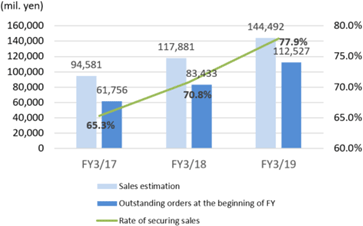 As a feature of the company, a new accounting period begins with a high progression rate (rate of securing target sales). For the fiscal year ending March 2019, the rate is higher than the past.