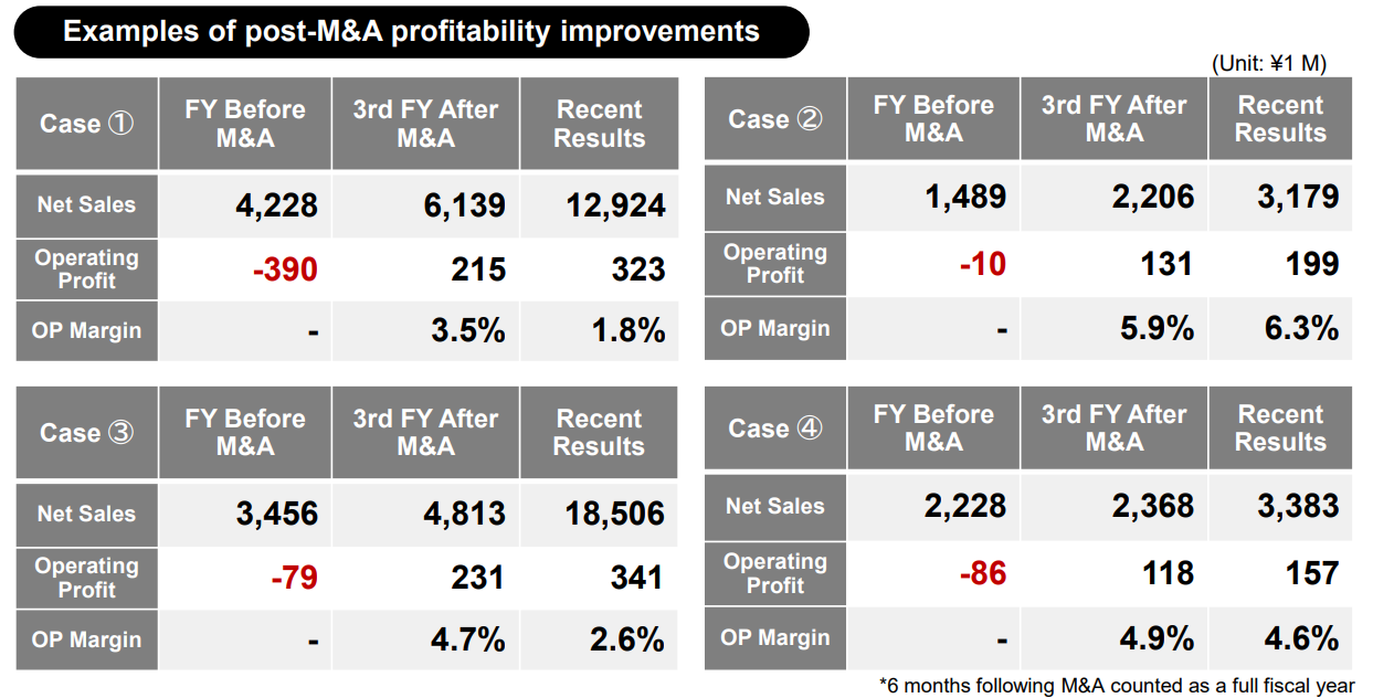 The key to a successful M&A is sharing philosophies, such as pursuing the improvement of customer satisfaction and clarifying the evaluation criteria, which includes respecting challenges to the maximum extent possible. The company believes these key factors can drastically change companies and has great confidence in its ability to revitalize its business.