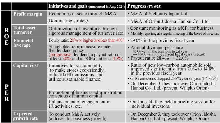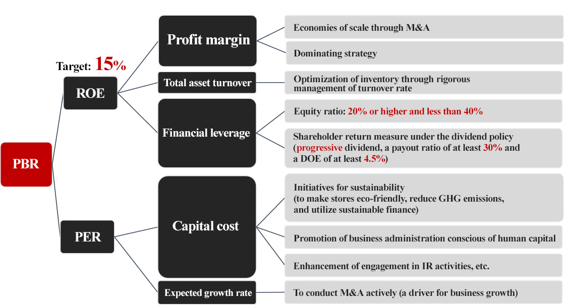 Although ROE is the highest, PBR remains below 1 with PER being single-digit. The company expects to make steady progress with the measured mentioned in “2-5 Measures for Achieving Management Focusing on Capital Costs and Stock Prices” below.