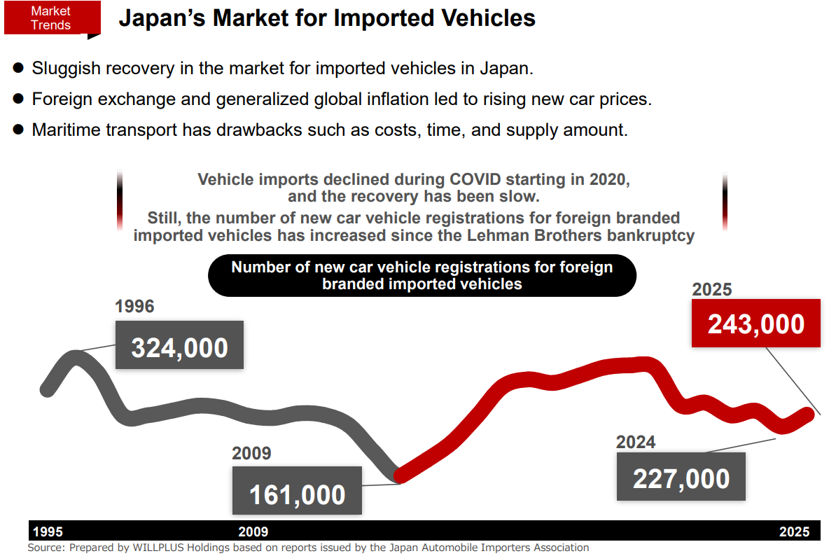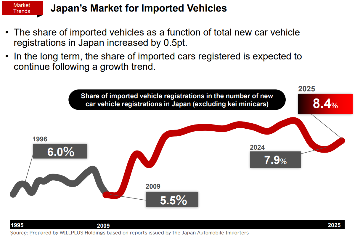 Against this backdrop, the recovery of the domestic imported vehicle market has been sluggish due to the rise in new car prices due to exchange rate fluctuations and inflation. However, the market share of imported vehicle registrations (foreign manufacturers) increased 0.5 percentage points year on year in 2025. In the long term, the market share of imported vehicle registrations is increasing.