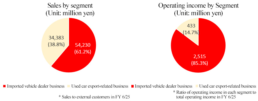 There are two segments to be reported: the imported vehicle dealer business and the used car export-related business.
