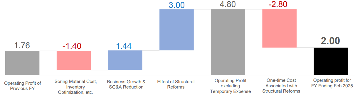 Gross profit is projected to decline due to soaring raw material prices and the rationalization of inventory management, but they aim to increase profit by improving profitability by growing business, reducing SG&A expenses, and reforming their business structure.