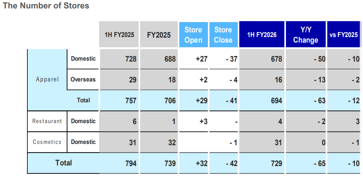 While closing unprofitable stores as part of its business restructuring, the company, described as a "creator of fashion entertainment," believes that physical stores remain important for articulating brand narratives and providing entertainment to customers. The company will continue to develop stores focused on brands popular with customers while implementing a “scrap and build” approach to update the image. By opening stores with large floor sizes and/or in prime locations, they will reform the revenue structure of their physical store business.