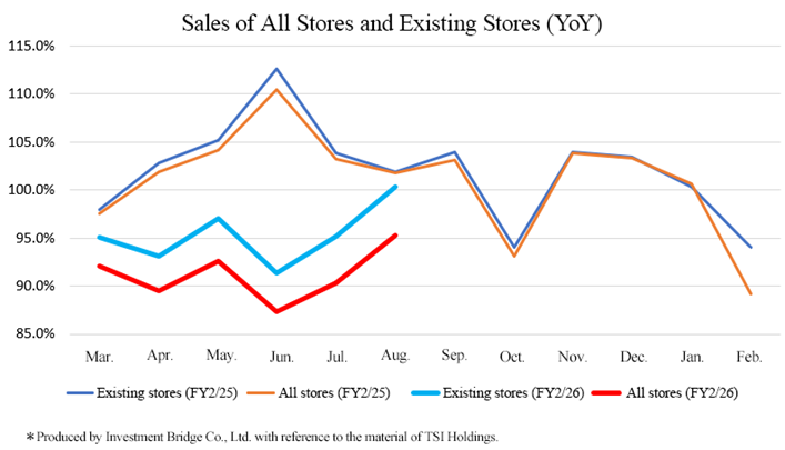 This report provides the overview of TSI Holdings Co., Ltd.’s financial results for the first half of the fiscal year ending February 2026.