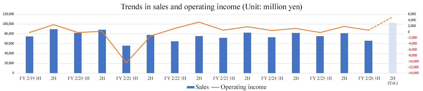 | FY 2/25 1H | FY 2/26 1H | YoY |