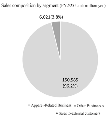 In the “apparel-related business,” the mainly includes planning, manufacturing, and sale of apparel products, as well as licensed brand operations and production/logistics functions. The “other business” includes sales agency and staffing services, synthetic resin-related business, store design and management, and food and beverage operations.