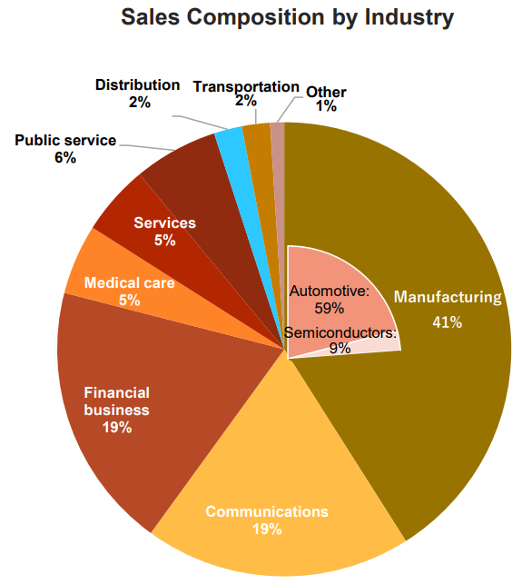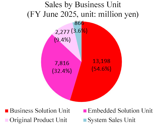 There are two segments: software development business and system sales business. The software development business consists of 3 business units: Business Solutions Unit, Embedded Solutions Unit and the Product Solutions Unit (former Original Product Unit).