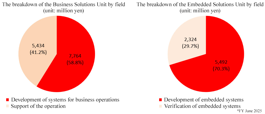 The Business Solutions Unit develops systems for business operations and supports the operation of such systems, while the Embedded Solutions Unit develops and inspects embedded systems.