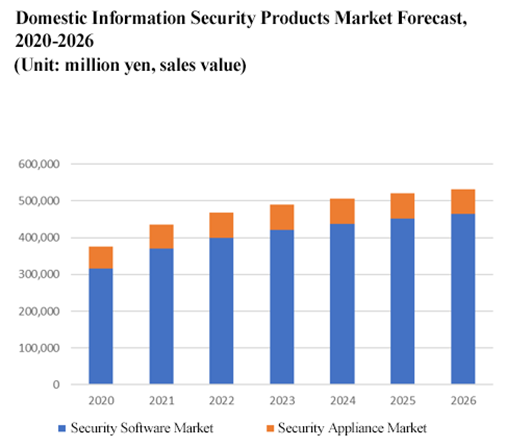 Due to the spread of COVID-19, corporate work styles have shifted from office work to remote working, and activities in the digital space have increased, resulting in the increase of security risks such as phishing attacks, malware infections, security breaches of corporate systems, and unauthorized ID use. International Data Corporation Japan, which specializes in IT research, estimates that the domestic security software market in 2021 was 370.3 billion yen (based on sales), up 17.2% from the previous fiscal year, and is expected to expand to 463.7 billion yen by 2026.