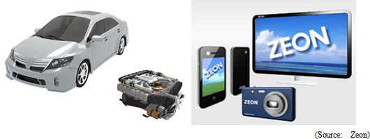 The main battlefront for growth lie in the overseas markets, and key concepts that Zeon has identified in these markets include environmental issues, growing population, changes in the automobile industry, and diffusion of Internet of Things (IoT).The outlook shows the vehicles with internal combustion engine continue to grow until 2040. At the same time the share of electric vehicles (EV) and plug-in hybrid vehicles (PHV) are expected to increases because of expanding demand for reductions in greenhouse gases. These trends support the expectation to contribute the expansion in business opportunities in the specialty rubber and energy materials sections. ![]() ![]() ![]() ① Elastomer Business