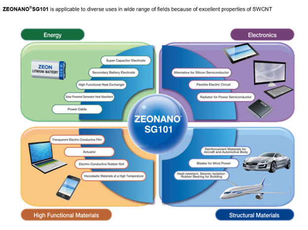 Aggressive R&D activities have allowed Zeon to launch various new materials into the market, and particularly high expectation is in the development of “single-wall carbon nanotubes (CNT)”.