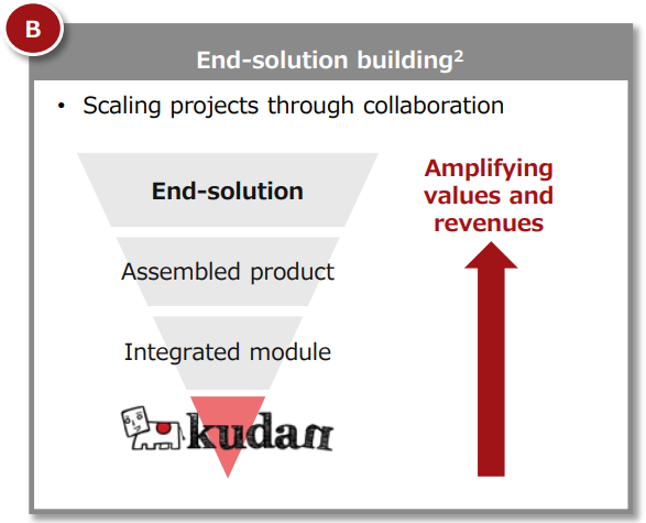 Regarding digital twins, the sale of scanners, etc. for mutually complementing next-generation solutions with the hardware/software package progressed. Regarding digital-twin solutions, the next-generation solution “Kudan PRISM” for managing and inspecting equipment contributed.