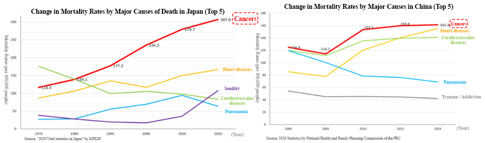 As it is said that the incidence rate of cancer is rising due to aging and changes in lifestyles including diet, the number of patients and deaths regarding cancer is rising in China as well.