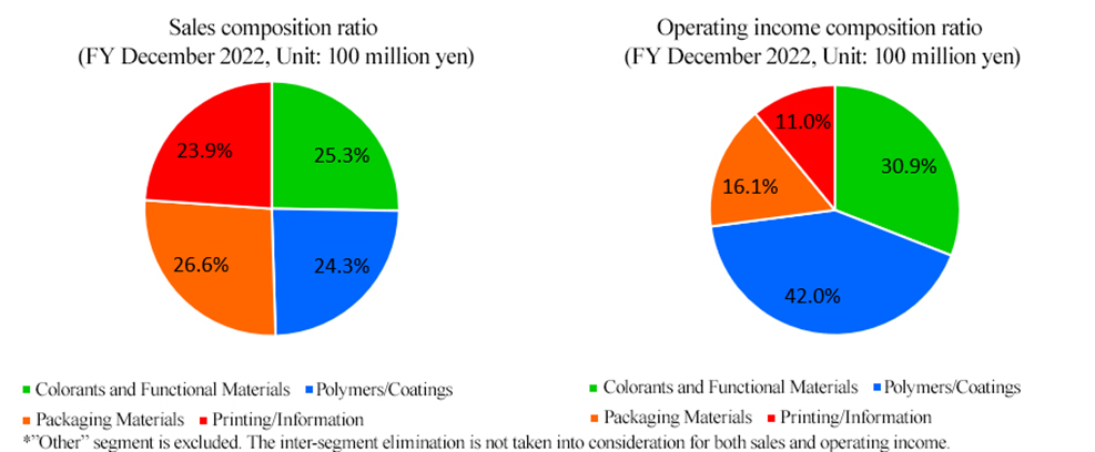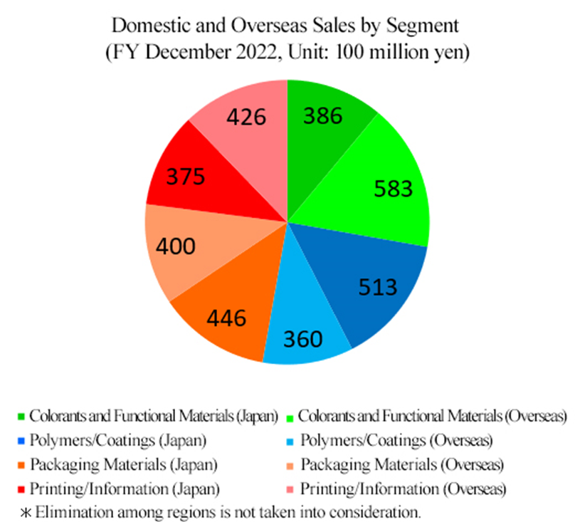 The business activities of the Company are classified into four segments: the “Colorants & Functional Materials Related Business,” “Polymers & Coatings Related Business,” “Printing & Information Related Business”, and “Packaging Materials Related Business”.