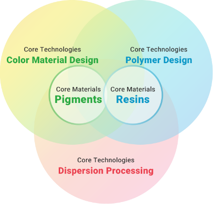 High-level dispersion technologies are required when various inks are produced by combining the above three raw materials.