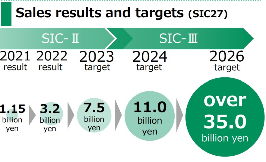 - In the term ending Dec. 2023, which is the last term of the Mid-Term Management Plan “SIC-II,” sales are projected to exceed the figures set at the beginning of the mid-term management plan period in all segments. It can be said that the company effectively utilized their technological capabilities and steadily met new demand while boosting their production capacity for materials related to lithium-ion batteries and environmentally friendly products.
