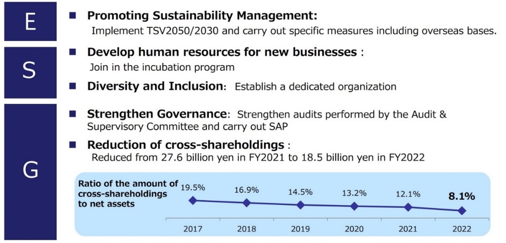 In particular, the company will improve the independence of directors and auditors, secure transparency, adopt a performance-based remuneration system, strengthen risk management, and reduce strategically held shares.