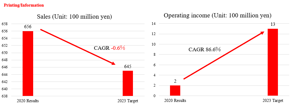 - In the term ending Dec. 2023, sales are forecast to grow 4.5% year on year to 330 billion yen and operating income to increase 60.2% year on year to 11 billion yen. Although a recovery of the economy is expected while coexisting with the coronavirus, the impact of the downturn of overseas economies and increasing prices in Japan are projected amid continuous global monetary tightening. The company assumes that the severe business environment will persist due to prices of raw materials and energies remaining high, economic stagnation, etc., However, they will strive to improve operating income based on the recovery of market conditions, expansion of overseas business, cost reduction and price revision. Decline of sales and growth of profit are projected in the Printing & Information Related Business segment, while both sales and profit are expected to increase in other segments. The company plans to pay a dividend of 90.00 yen/share, like in the previous term. The estimated payout ratio is 79.5%.